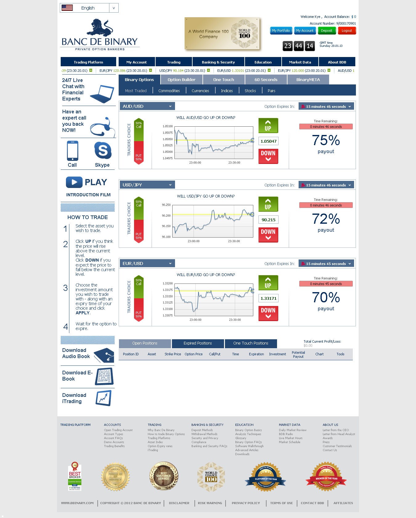 Traders can call client assistance agents by phone at their Cyprus and London headquarters, in addition to their Belgium workplace. Contact can also be made by means of email and live Chat. Banc De Binary is one of minority brokers that offer Skype assistance and this is definitely something that can be beneficial to traders with all levels of binary alternatives trading.